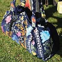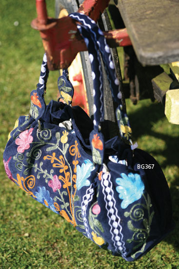 A very fashonable Large Deep Blue Velvet bag with a beautiful colourful flower embroidery.