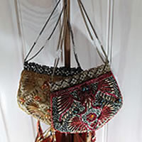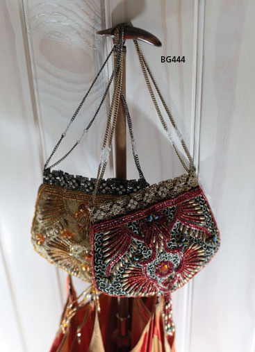 Vintage beaded and Jewlled evening bag in gorgeous Burgundy/Brown or Gold and Orange in has a dark silver metallic chain.