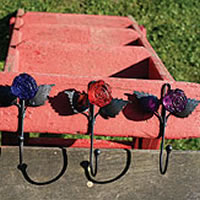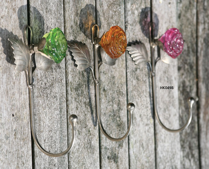 A Beaultiful Glass Rose hook. on dark steel. in a choice of 3 colours