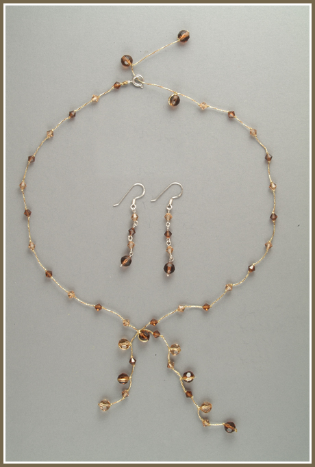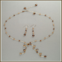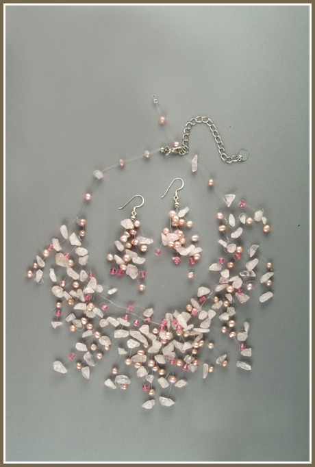 Rose quartz and pink facet beads in a cascade neclace and earring design.
