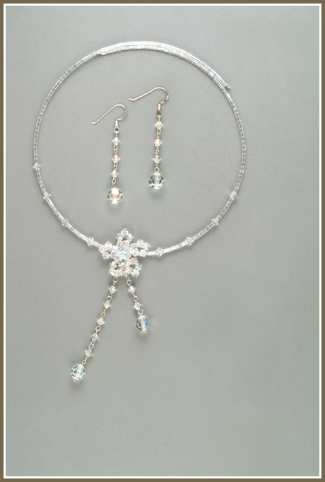 Stunning Clear sparkly rainbow bead choker with flower and drop design. Matching earrings on Sterling Silver hooks